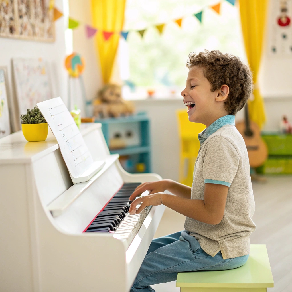 “J’adore mes cours de piano ! La prof est super gentille et elle m’aide à bien placer mes doigts. Maintenant, je peux jouer une chanson entière tout seul !”